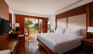 اتاق دبل هتل نوسا دوا بیچ بالی،یک اتاقی عالی با متراژ 40 متر مربع از نوع اتاق پرمیور و دارای بالکن اختصاصی با منظره استخر و باغ و محوطه بی نظیر هتل می باشد که تجربه ای اقامتی لوکس و لذت بخش را در تور لوکس بالی و ساحل نوسادوا بالی با رزرو تور اقساطی بالی برای شما به ارمغان می آورد.