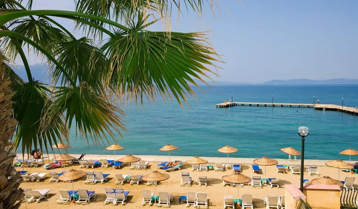 ساحل اختصاصی شنی در کنار دریای اژه