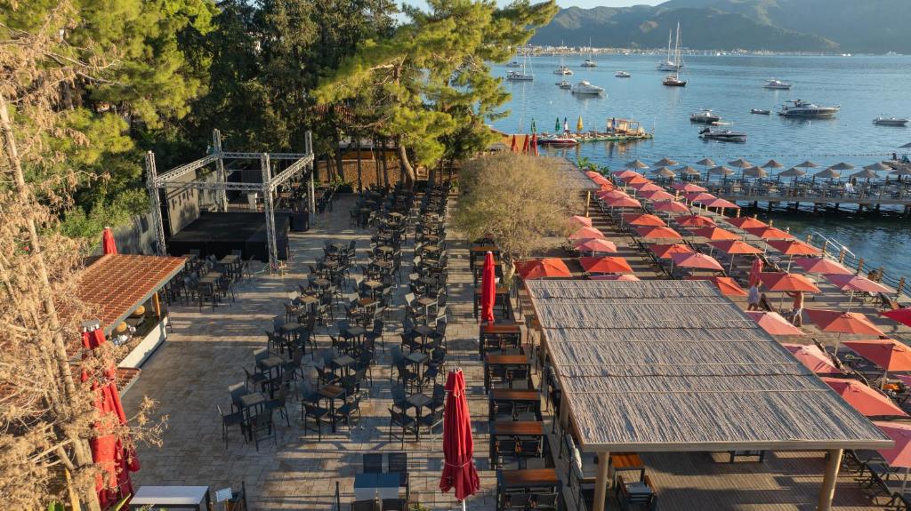 مهمانان از امکانات گسترده هتل بهرهمند می شوند؛ شامل استخرهای روباز و سرپوشیده، پارک آبی کودکان، ساحل خصوصی، ورزشهای آبی، سالن بدنسازی و مرکز اسپا. همچنین هتل دارای چندین رستوران با منوی بینالمللی و محلی است که تجربهای خوشمزه و متنوع را برای مهمانان فراهم میکند. فضای هتل با طراحی مدرن و محیطی آرامشبخش، برای خانوادهها، زوجها و گروههای دوستانه ایدهآل است. دسترسی مستقیم به سواحل زیبای دریای اژه، فعالیتهای تفریحی و خدمات حرفهای هتل باعث میشود گرند یازیچی کلاب مارماریس پالاس یک مقصد مناسب برای استراحت و تفریح در مارماریس باشد.