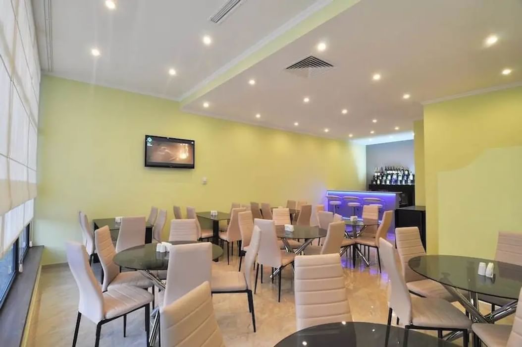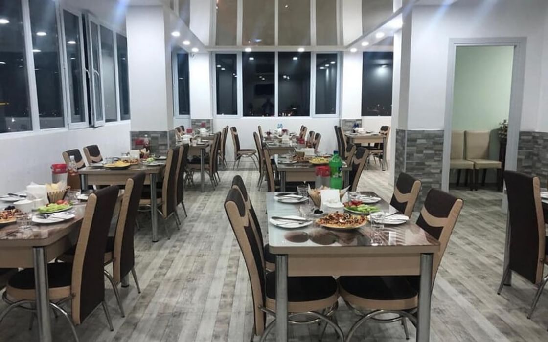 رستوران با منوی بینالمللی (غذاهای آمریکایی، ترکی، آسیایی و اروپایی برای صبحانه، ناهار و شام)