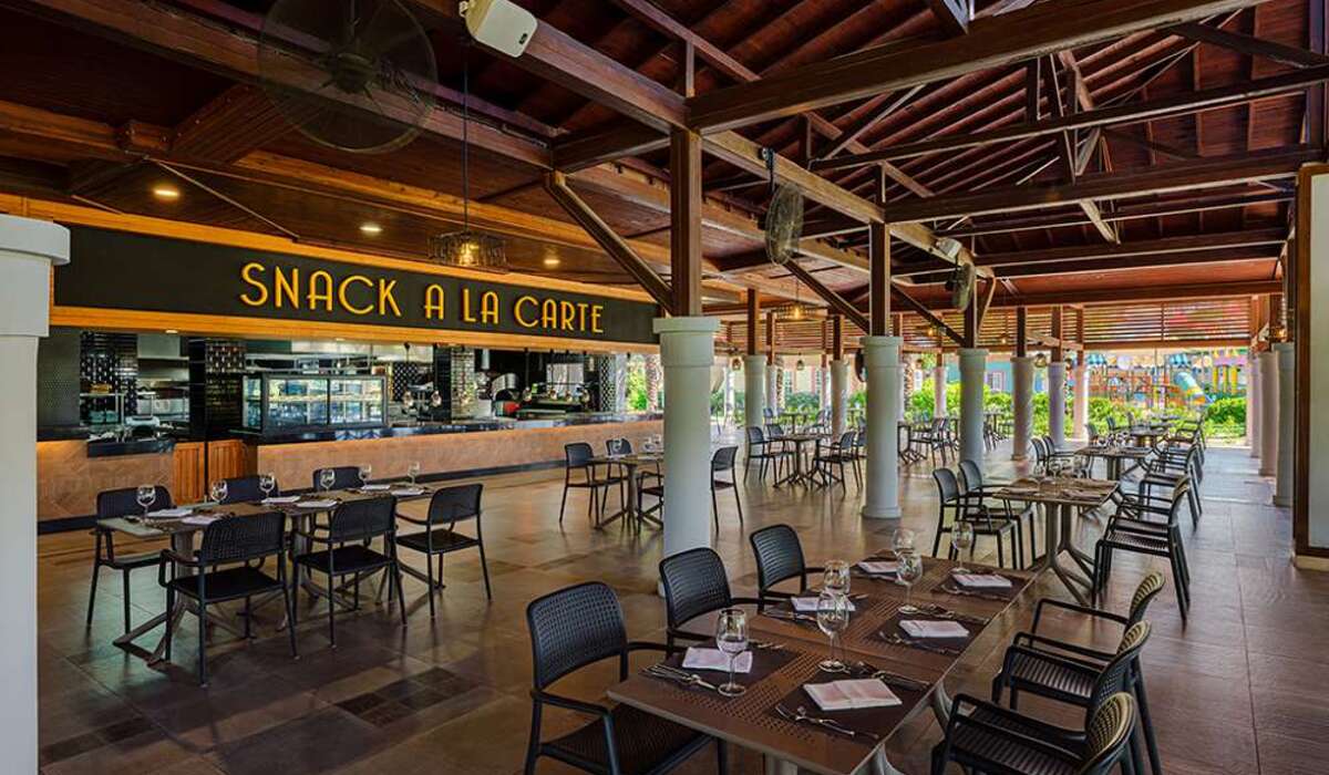در این هتل چندین رستوران و بار فعال است که انواع غذاهای ترکی، بینالمللی، دریایی و ایتالیایی را ارائه میدهند. رستوران اصلی هتل با منوی متنوع و کیفیت بالا، رضایت اکثر مسافران را جلب کرده و بارهای ساحلی و استخر نیز نوشیدنیها و اسنکهای متنوعی سرو میکنند.